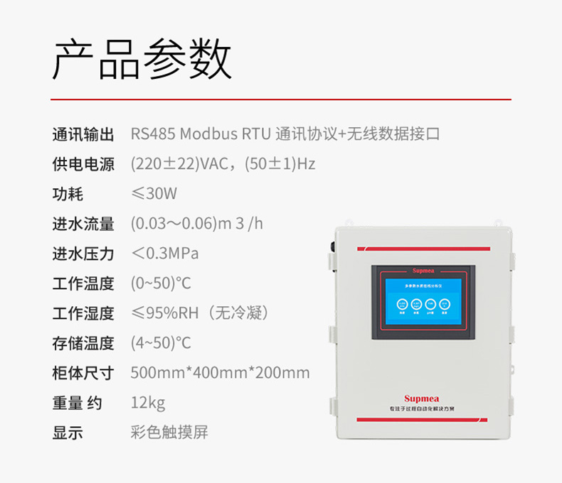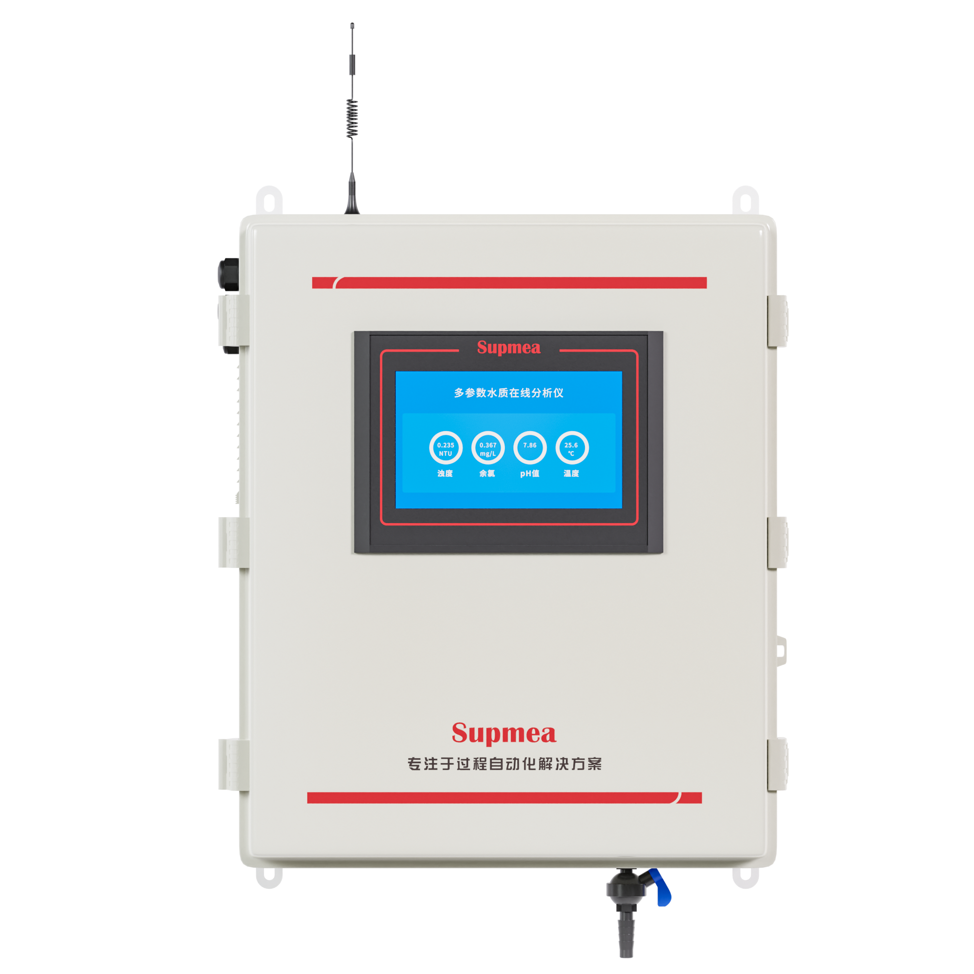 本款多参数水质在线分析仪是本公司自主研发制造的新一代饮用水水质监测设备,该设备可广泛用于城市或村镇自来水厂、自来水输水管网、自来水二次供水、用户末梢、室内游泳池、大型净水设备和直饮水等水质在线监测,是水厂生产过程控制、水利水务管理、卫生监督等领域必不可少的在线分析设备。 多参数水质在线分析仪分为标准版和定制版,标准版监测参数包括浊度、余氯/二氧化氯/臭氧、pH、温度、电导率/TDS、ORP 等。同时,定制版可以根据客户需要,删减参数,定制仪器外形、标志、系统名称等项目。