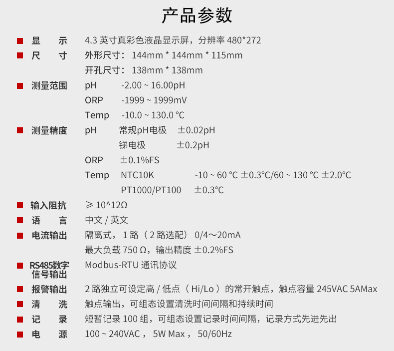 MIK-PH8.0控制器是一款智能在线水质分析仪表,用于在线监测pH/ORP值的控制器,通过RS485或电流变送输出到监控室进行记录保存。广泛应用于火电、化工化肥、冶金、环保、制药、生化、食品和自来水等行业。
