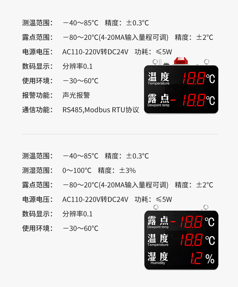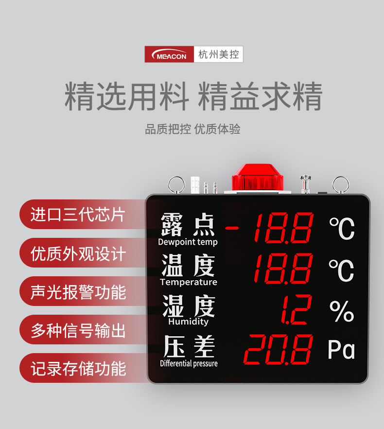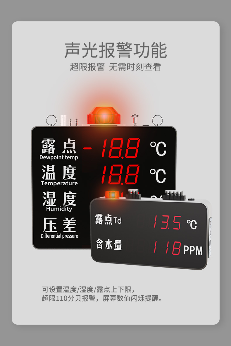 太阳集团tyc4633工业露点仪传感器温湿度压差显示屏在线声光报警
