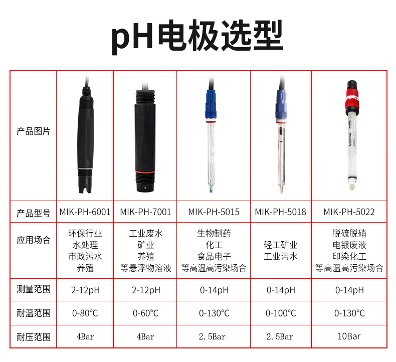 MIK-PH-6001为经济款塑壳电极,响应快、稳定性好,可根据客户需要加装各种温补型号PT100/PT1000/NTC 10K等。广泛应用于火电、化工化肥、冶金、环保、制药、生化食品和自来水等溶液中的PH值或ORP值和温度的连续监测。
